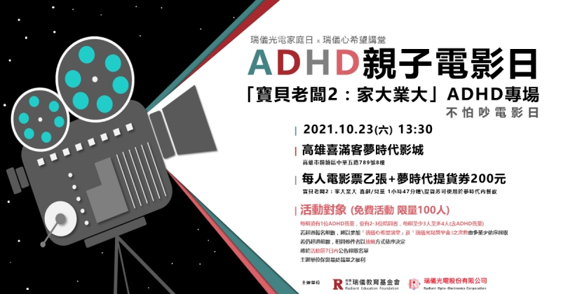 一年一度的瑞儀光電家庭日,今年持續攜手瑞儀教育基金會,ADHD家庭猶如瑞儀光電延伸的員眷,邀請ADHD家庭,一同享受瑞儀家庭日的喜悅,